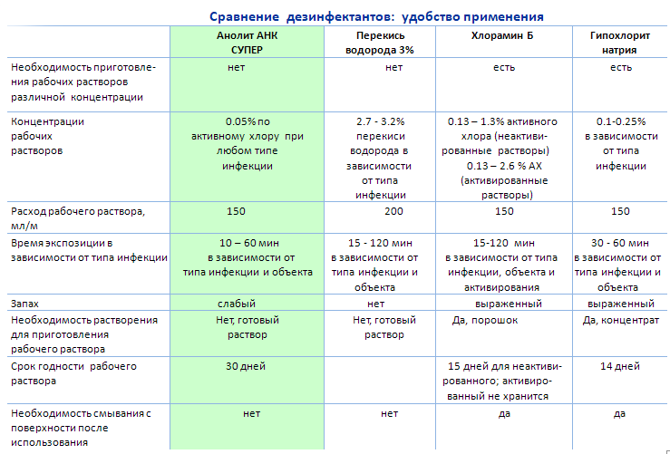 которые нужно разбавлять до определенной концентрации в зависимости от объекта и вида инфекции. Например,