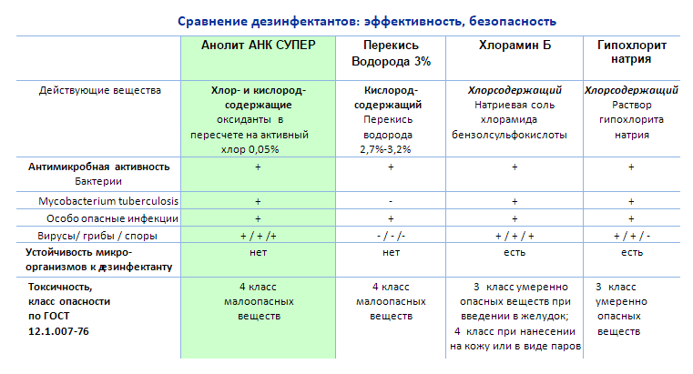 Анолит АНК СУПЕР относится к минимальному классу опасности (по ГОСТ 12.1.007-76 − 4 класс малоопасных
